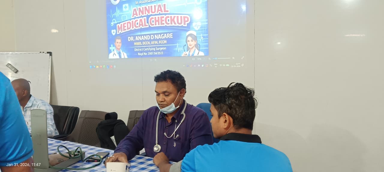 The health check-up includes basic and essential medical examinations such as general physical assessment, blood pressure monitoring, blood sugar testing, BMI evaluation, vision check, and other routine investigations as advised by medical professionals. These check-ups help in early detection of health issues and encourage employees to take timely preventive and corrective measures.