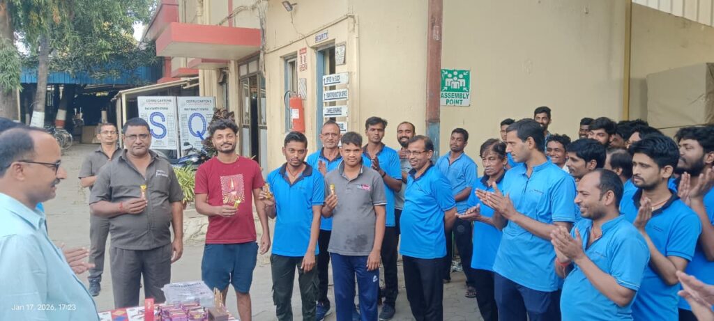 To promote workplace excellence, CCIPL actively practices 5S. The winning zone of the internal 5S audit is recognized every month with a trophy and monetary reward. The winning team celebrates this achievement within their zone by sharing samosas or snacks, reinforcing teamwork and collective pride.